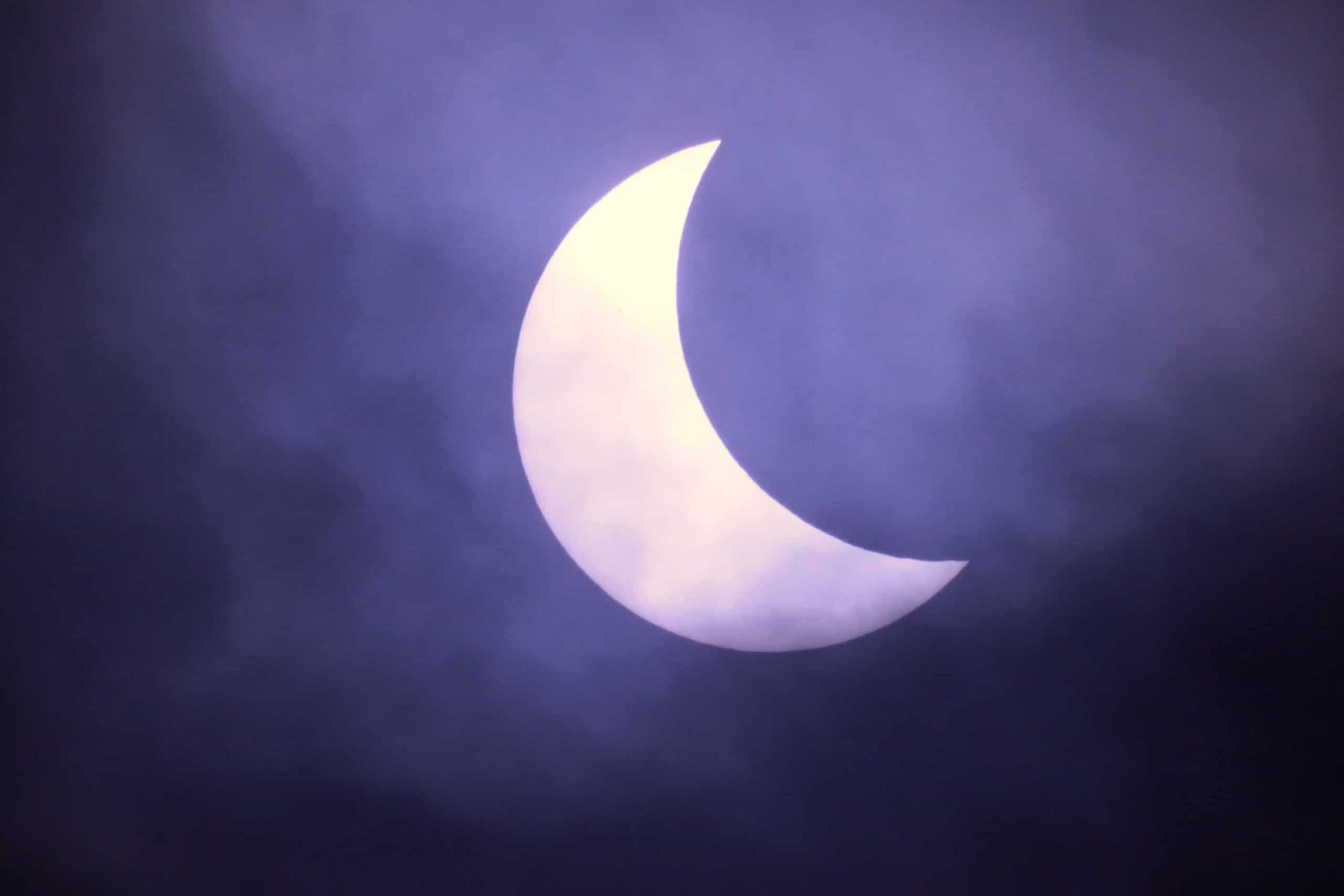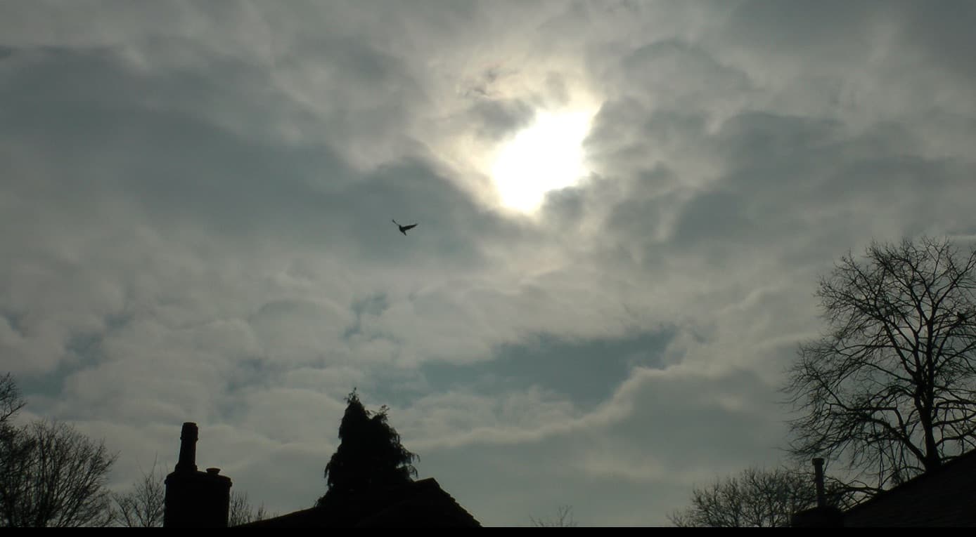 This 3 minute video is a collection of intervals when cloud cover did not completely obscure the sun during the couple of hours of the solar eclipse. It has been speeded up twenty times normal speed.